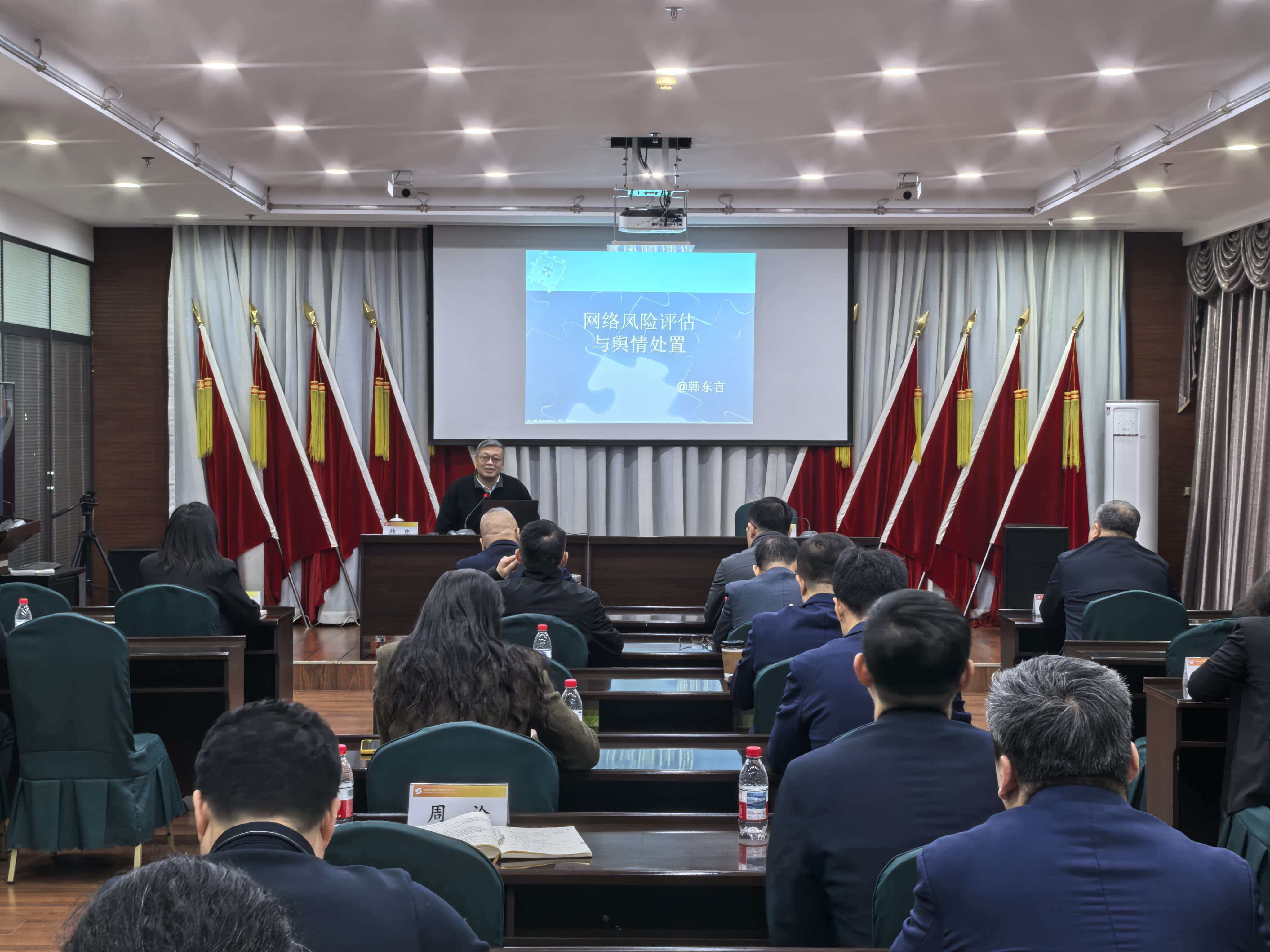 韩东老师以“网络风险评估与舆情处置”为主题,围绕舆情的种类和舆情处置方法,结合大量社会热点案例,通过案例剖析、情景推演、讲授原理相结合的方式,对于如何做好意识形态和舆情管理工作做了深入的讲解,直观地向党员干部说明了意识形态作为一项极端重要工作的意义以及当前舆情管理工作的复杂性。最后,韩东老师紧密结合中色沈矿作为矿业央企的行业属性与生产经营实际,围绕明确舆情回应主体、完善风险研判体系、优化应急处置预案、正面舆论引导等关键环节,提出了一系列具有针对性和可操作性的指导意见,为公司进一步提升舆情风险防控和应急处置能力、筑牢意识形态安全防线提供了有力的理论支撑和实践指引。